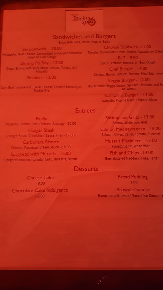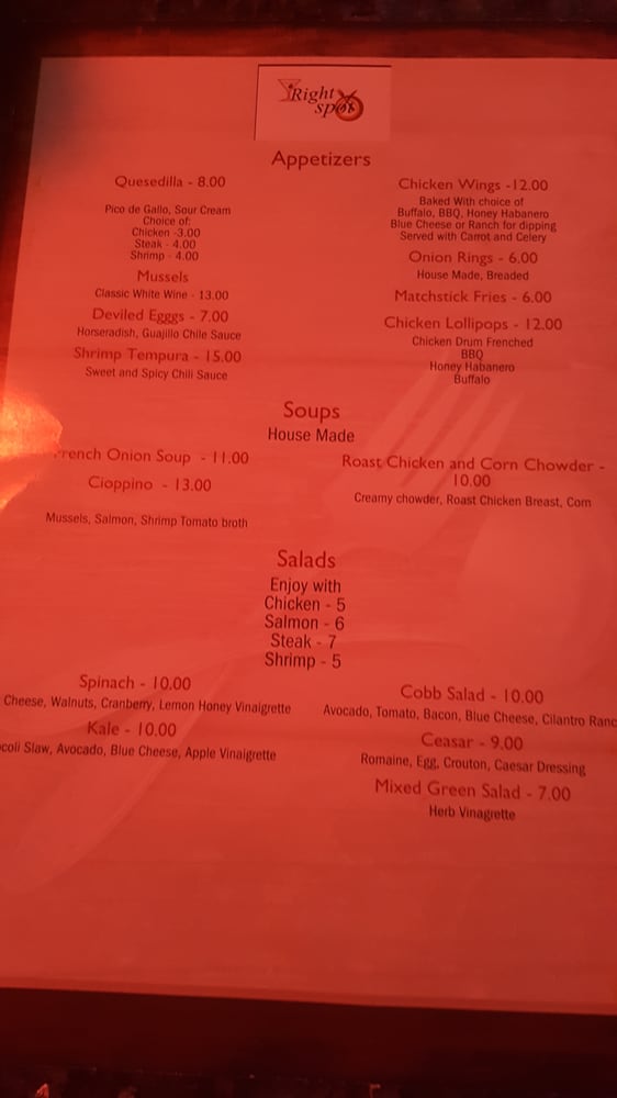 Right Spot Restaurant & Bar is a French-American bar located in Washington, DC, offering a casual dining experience with a full bar and outdoor seating. The menu boasts a variety of appetizers, salads, and sandwiches, including oven-roasted wings, quesadillas, spinach salad, and chicken sandwiches. Customers rave about the fresh ingredients and flavorful dishes, with mentions of the chicken quesadilla and Cajun chicken pasta. The cozy ambiance, complete with lounge-style seating, big-screen TVs, and occasional live music or DJ, creates a welcoming environment for gatherings with friends. With options for vegetarians and happy hour specials, Right Spot Restaurant & Bar is a must-try spot for a relaxed dining experience in the city.